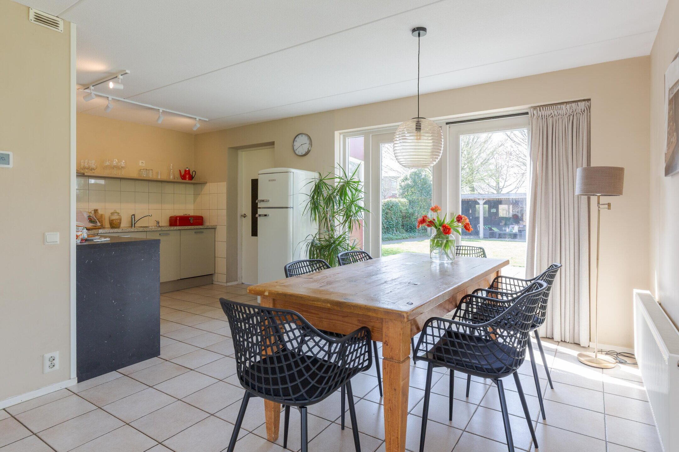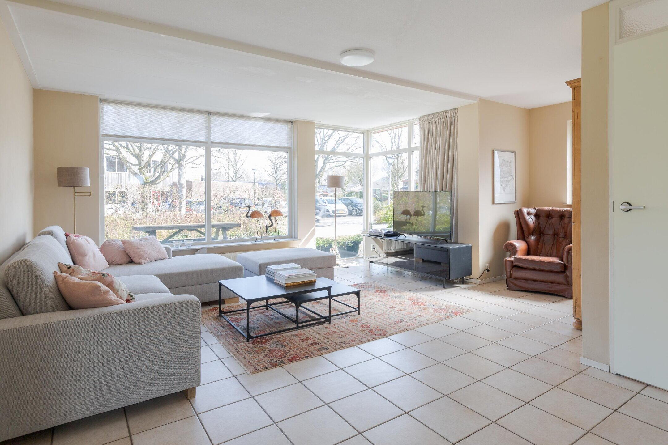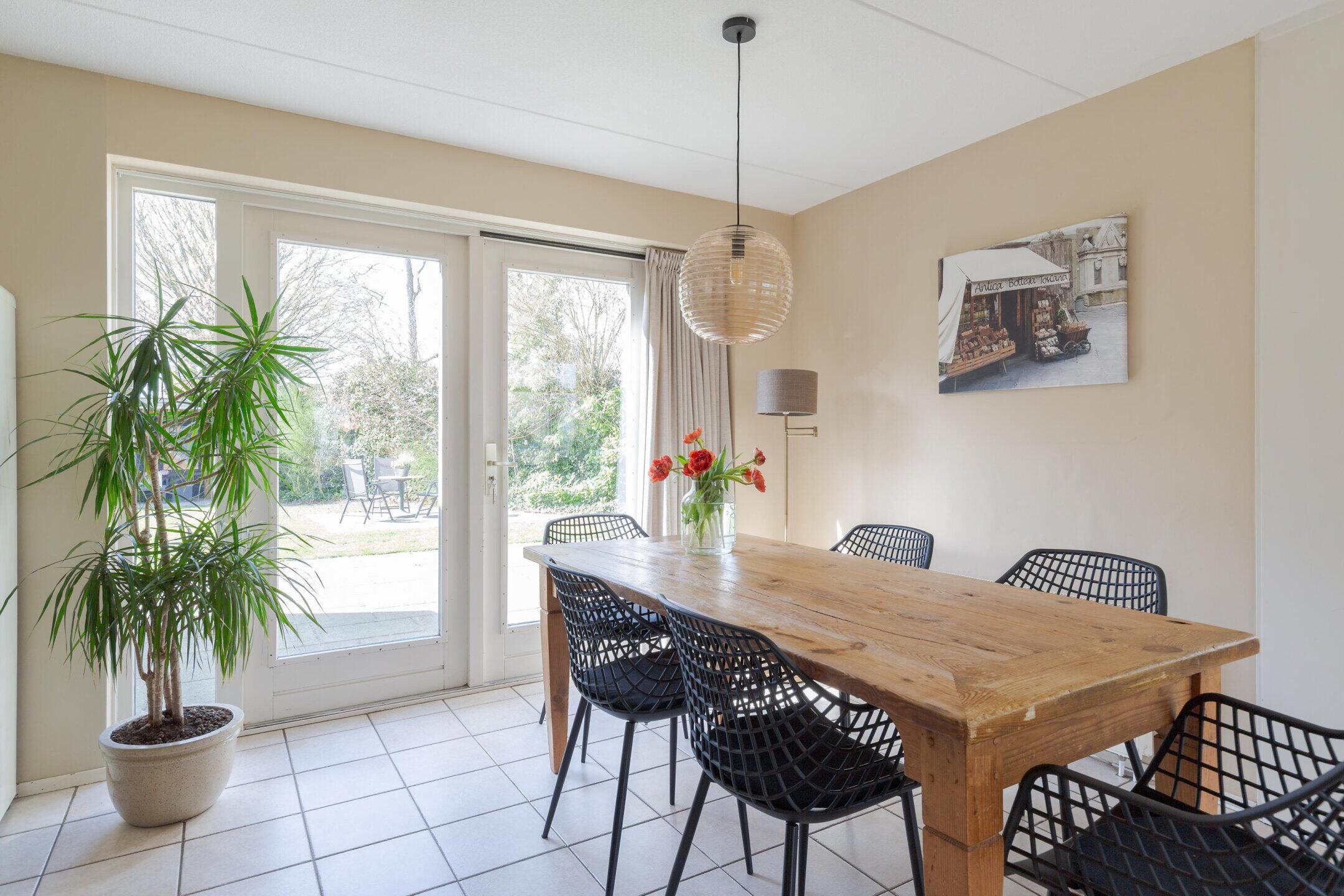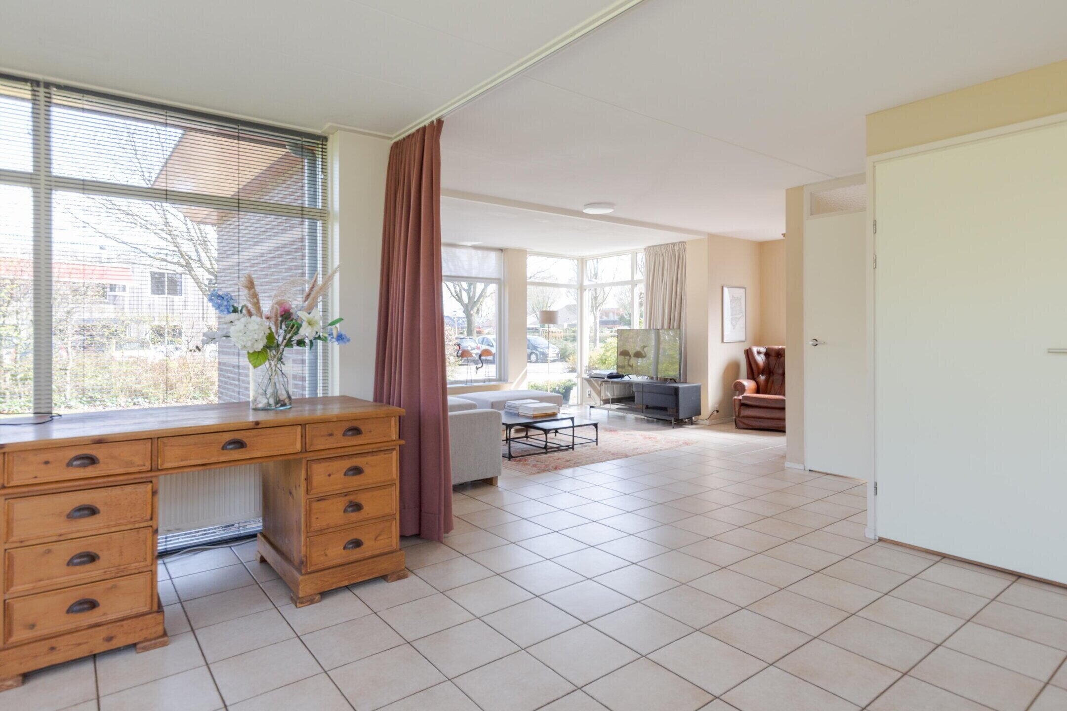 Parkeren doe je natuurlijk gewoon op je eigen oprit. Via de hal kom je in de woonkamer, en daar word je getrakteerd op een heerlijke ruimte met veel licht. Zowel aan de voorzijde als aan de zijkant een flinke erker met grote raampartijen. Aan de achterzijde de keuken met toegang tot de bijkeuken.